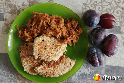 Обед -котлеты 235г(120белоки115овощи) добрала капустой чуть больше-100г