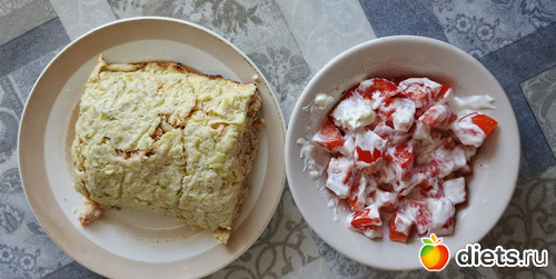 Ужин -рулет 300г (120гфарш+кабачковый корж 180г), помидоры 120гс 1ч. л сметаны и чесноком.