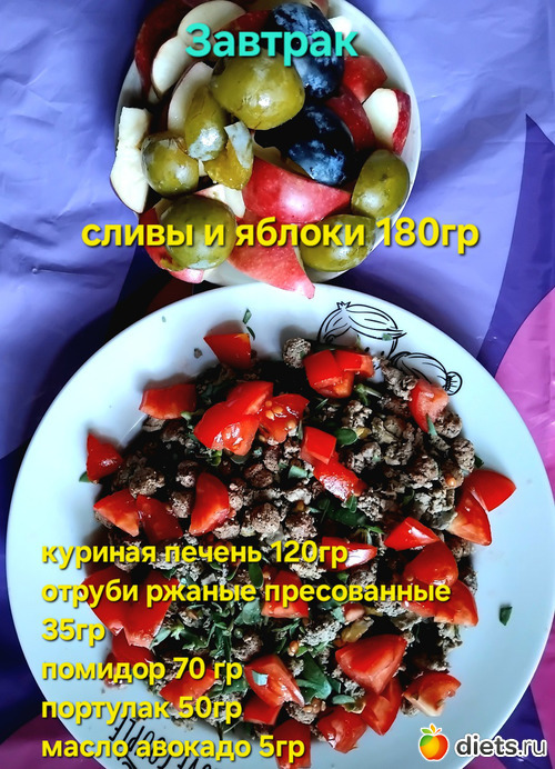 Завтрак: 360 г шарлотка ( 180 г яблок, 2 яйца, 30 г геркулеса , 10 г сливочного масла) в микроволновке