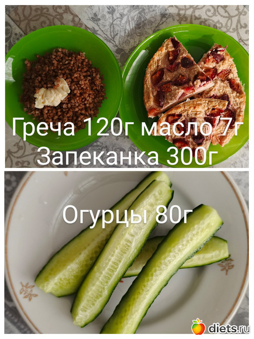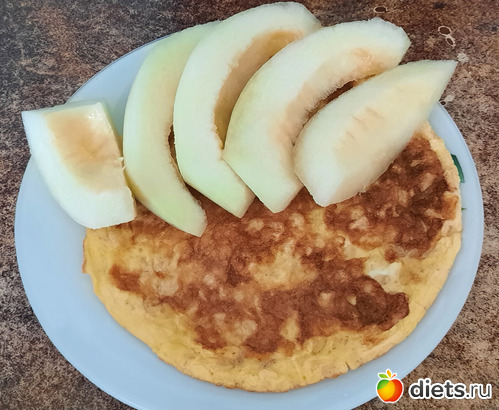 Завтрак - 240 г овсяноблин, 10 г сливочного масла, 180 г дыня