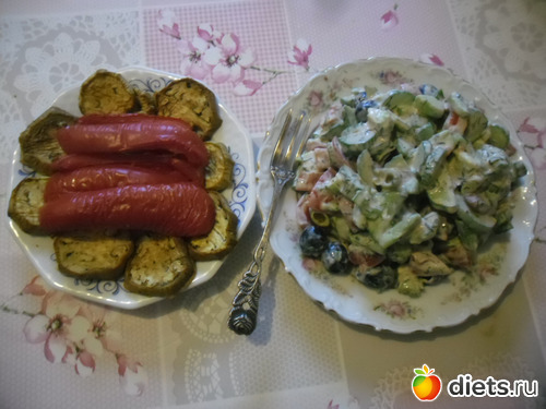 Ужин: 100 г брынза, 160 г вареная свекла, 240 г помидоров, огурцов, 10 г оливкового масла