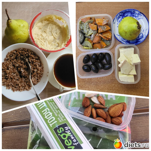 З - гречка 120г, хумус 120г, груша 180г + черный кофе