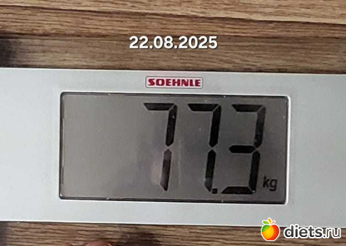 МОЙ ВЕС сегодня 22.08.2025 77,3 кг, результат с начала марафона -4,7 кг.