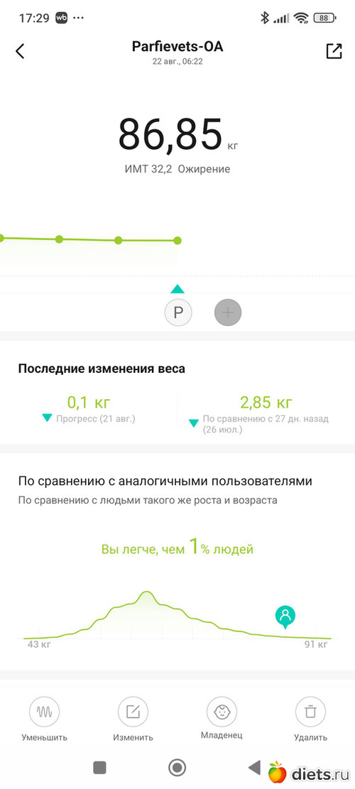 МОЙ ВЕС был на 01.08.2025 ..82,9.......кг,сегодня 22.08.2025 .79,1......кг, результат с начала марафона ( 01.08.2025 )минус 3,8.....кг хочу и СТРЕМЛЮСЬ иметь вес на 01.09.25 .78......кг