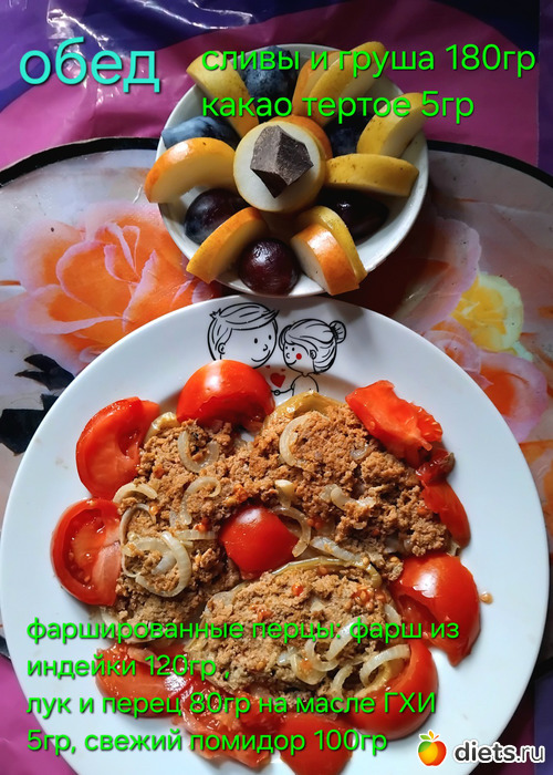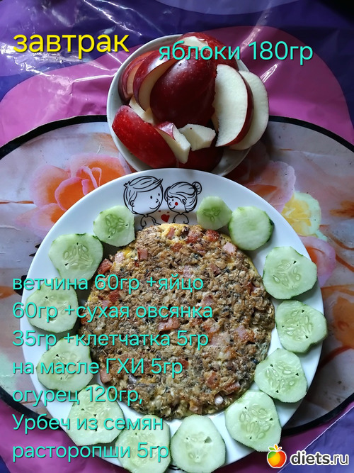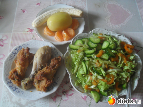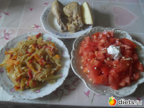 О- сложности с фото-мы ходили с внуками на пикничок-жарили на мангале на решетки колбаски, хлеб, ели овощи, фрукты. У меня была куриная грудка копченая 120г и примерно 250-300помидор, огурцов и листового салата и яблоки -2шт грамм по 90-100
