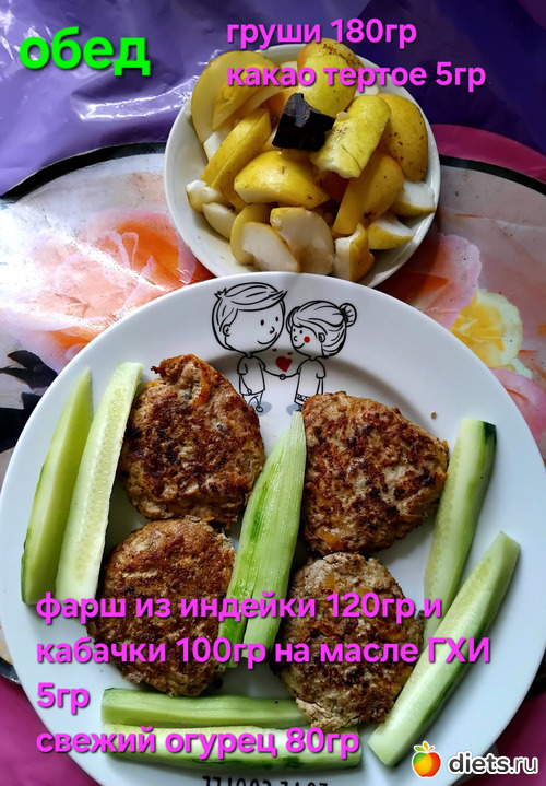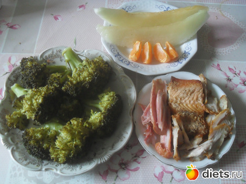 Обед: 120 г куриного филе отварного, 200 г свекольник (соскучилась), 180 г дыни.
