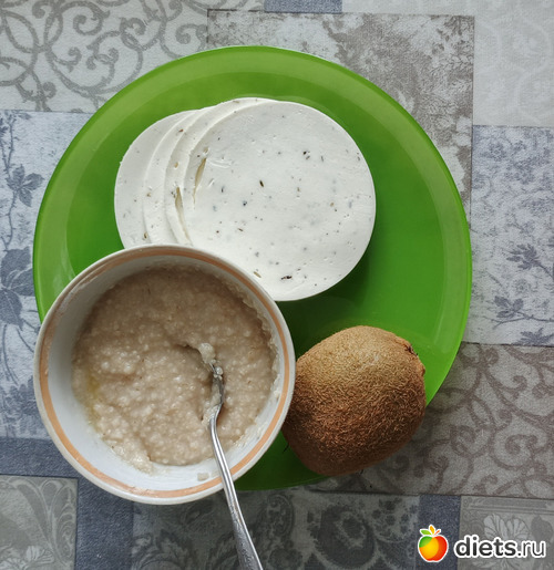 З-120г творожный сыр, 120г каша-отрубяша +10г масло сл, киви "огромный" на 184г