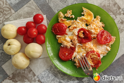 З- яичница из двух яиц 120г с помидорами+свежие 150г, нектарины белые 180г