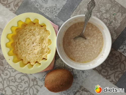З- запеканка -яйцо 50г, творог 70г, овсяные отруби 10г, банан 50г, киви 130г каша-отрубяша 100г