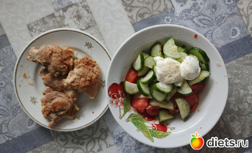 У- куриное филе 120г, салат из помидор и св просольных огурцов 350г с 20г сметаны