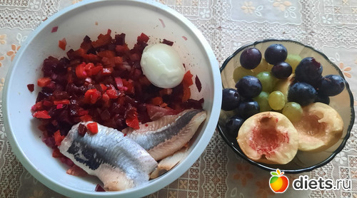 На обед можно сварить суп + 50гр отварного маса и также чечевицу 100 гр готовой (приправы по вкусу)