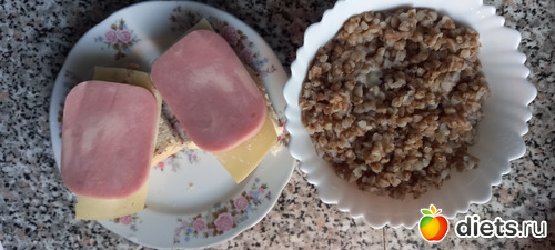 Завтрак: гречка с маслом, бутеры с сыром и