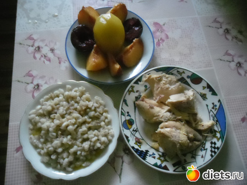 Обед - перловка с баклажанами и адыгейский сыр, яблоки с остатками варенья из рябины(просто накладывала на яблочные дольки) и сыр твердый грамм 35