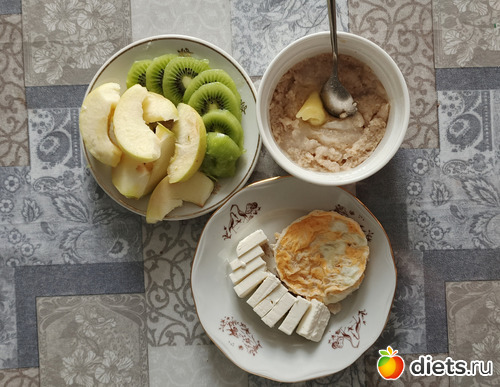 З- каша отрубяша 120г,5г масло ГХИ, сыр творожный 50г, яйцо в СВЧ 60г, фрукты 180г