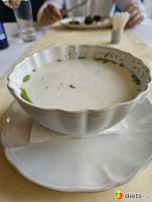 Уха по-фински, на фото не видно содержимое, но там лосось, осетр и креветки. Тоже очень вкусно!