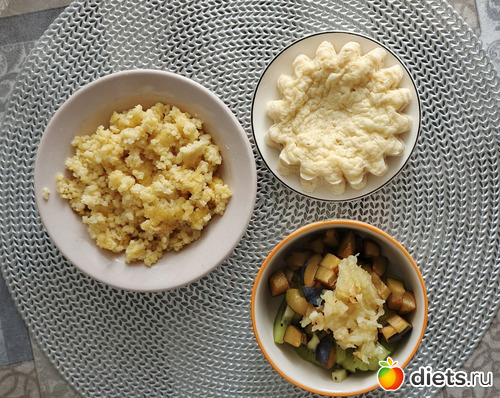 завтрак варёная картошка 59 г, баклажан печёный 25 г, холодец из куриных желудков 140 г, хлеб 25 г, сыр лёгкий 30 Г яблока 120 г ,печенье без сахара 22 г