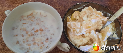 З- каша пшенная 120г жаренная на 10г маслаГХИ, салат фруктовый киви, сливы, печеные яблоко 130г и запеканка 1яйцо +1 белок 70г, творог 50г, банан 50г