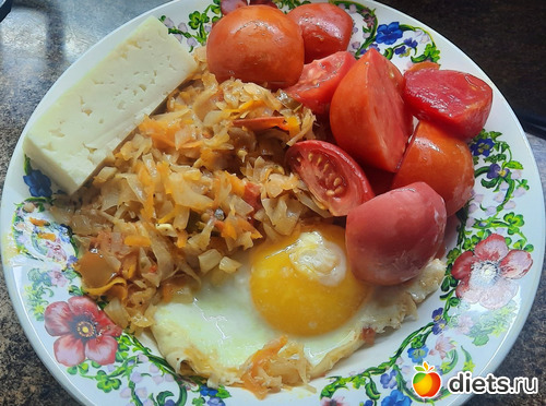 завтрак варёная картошка 97 г, капуста квашеная 60 г масло льняное 4 г, хлеб 20 г сыр 20 г, омлет из одного яйца, 30 Г молока,