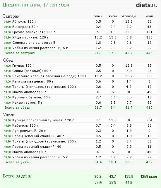 Ужин яйцо одно, творог 5% 50 г сыра лёгкие 20 г, хлеб 20 г всего за день получилось 1325калорий, бжу 111/44 /119