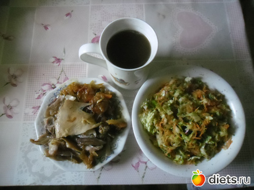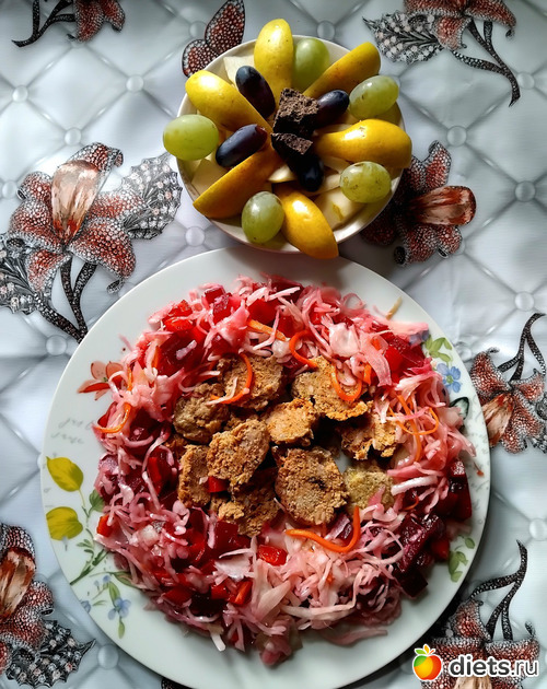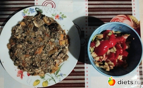 Пообедали в 16ч - теплый салат с баклажанами и шницель куриный.