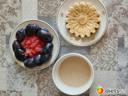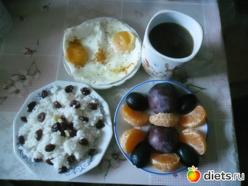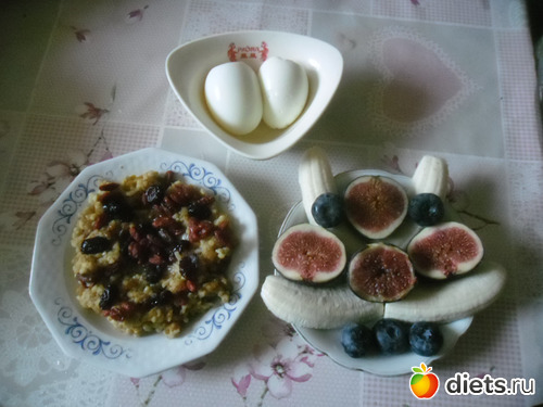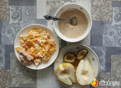 З-каша отрубяша 120г, яичница-болтунья 120г, груша, слива 180г