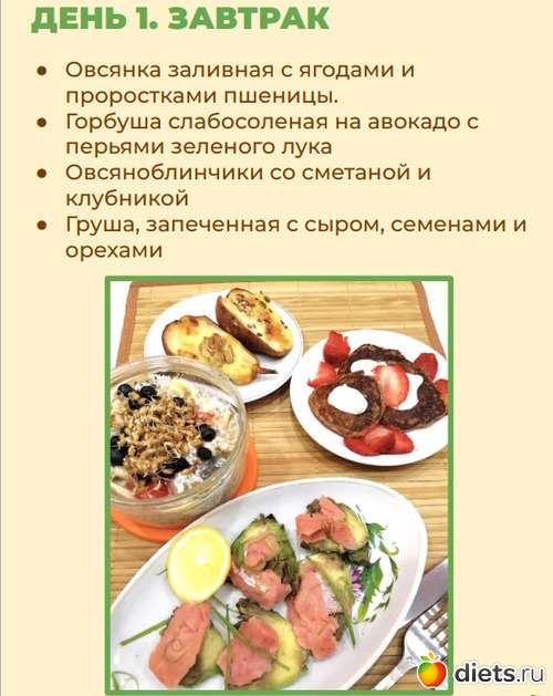 Завтрак: Овсянка заливная ряженкой с семенами чиа и малиной, сельдь на авокаде, запечёные груши с семенами и орешками покрытые сыром и бакал цикория с молоком.