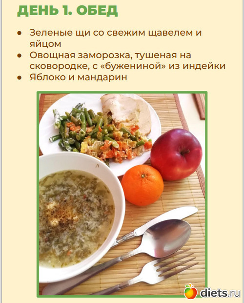 Дополняем обед мандарином и яблоком (или какими-то другими фруктами) общим весом 180 грамм.