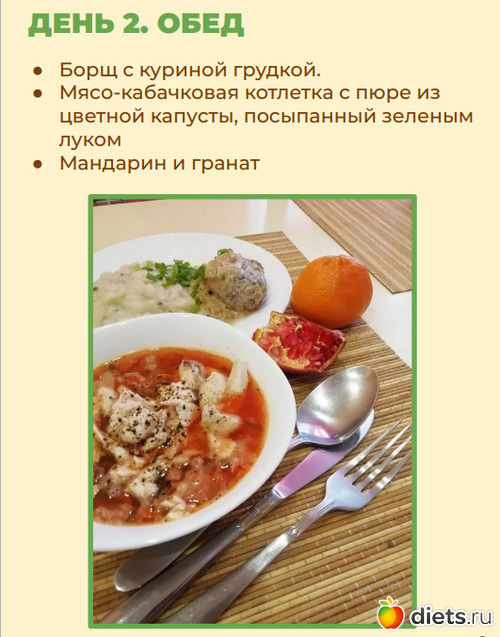 Дополнить обед фруктами: крупным мандарином и кусочком граната вес 180 г.