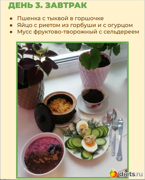 Завтрак:каша пшённая с тыквой и сливочного масла, муссфруктовый с семенам лна и чиа и грецкими орехами, яйцо со сливочным сыром и сельдью сверху и огурцами, кофе Цикория