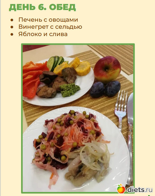 Обед дополняется яблоком среднего размера и двумя плодами сливы.