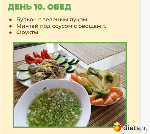 Обед дополнить мандарином, киви и яблоком – 180 г