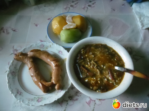 Обед: Борщ, сосиськи и кофе Цикория с молоком