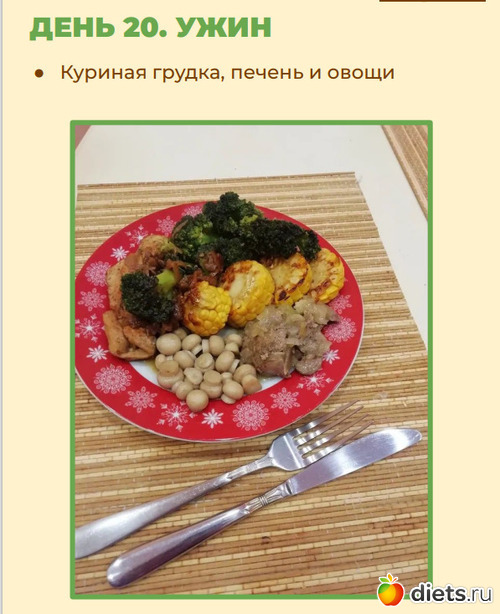 Выложить на тарелку овощи, мясо и печень и шампиньоны.