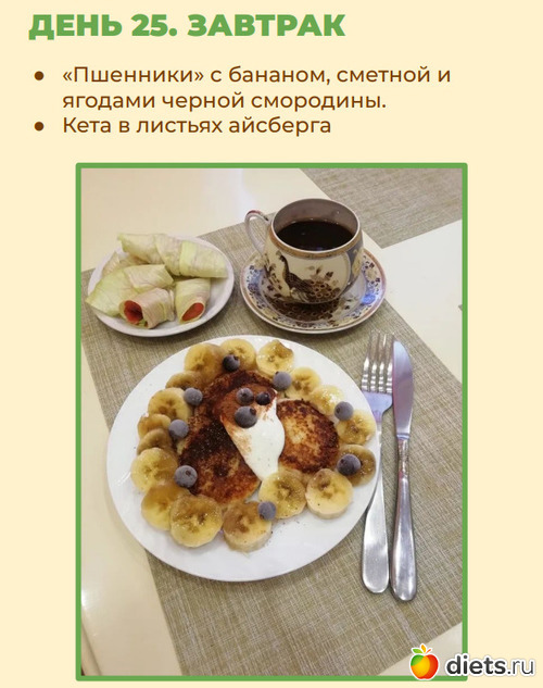 Выкладываем на тарелку, добавляем сметану и фрукты ( банан и ягоды), присыпаем небольшим количеством какао-порошка.