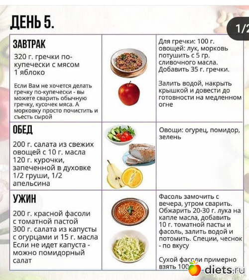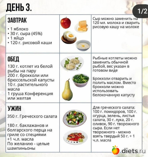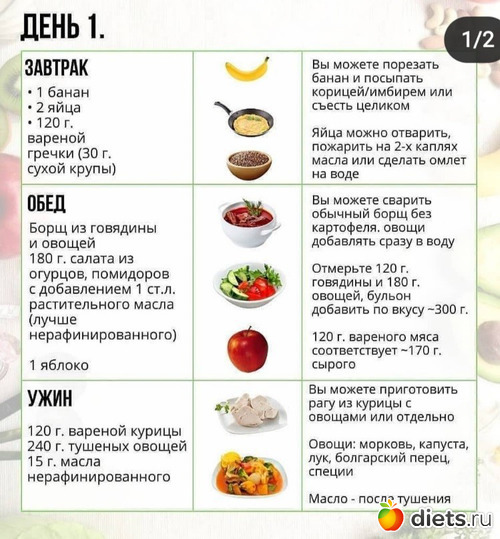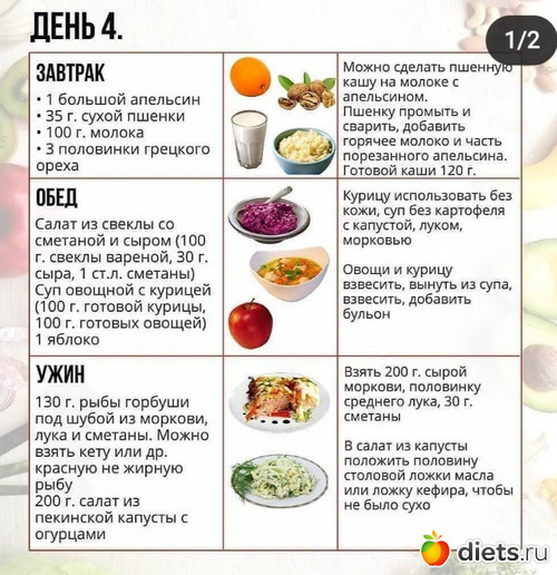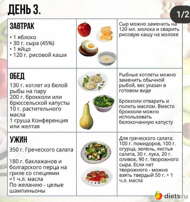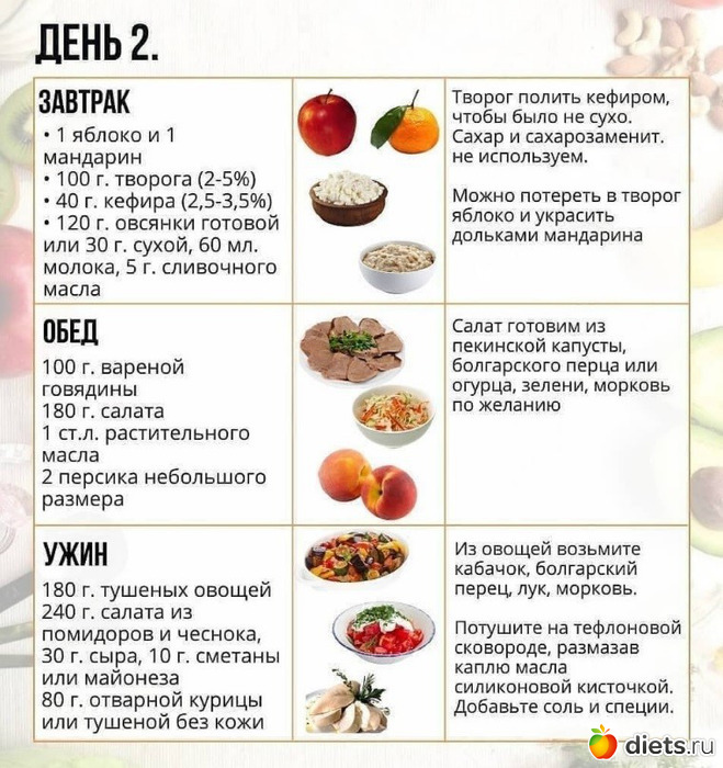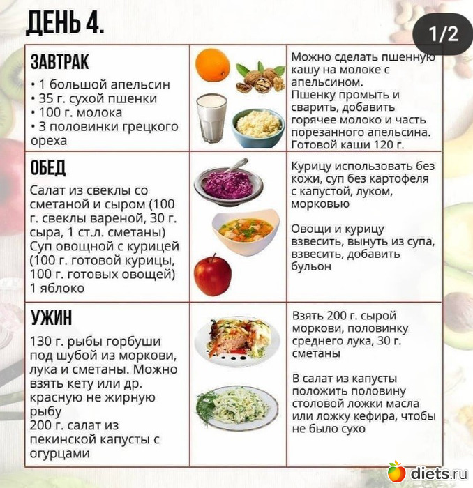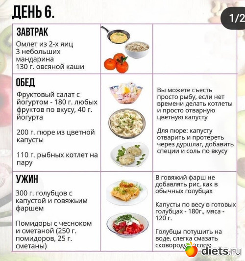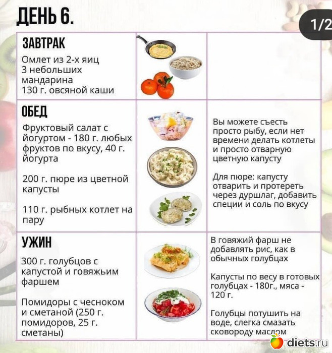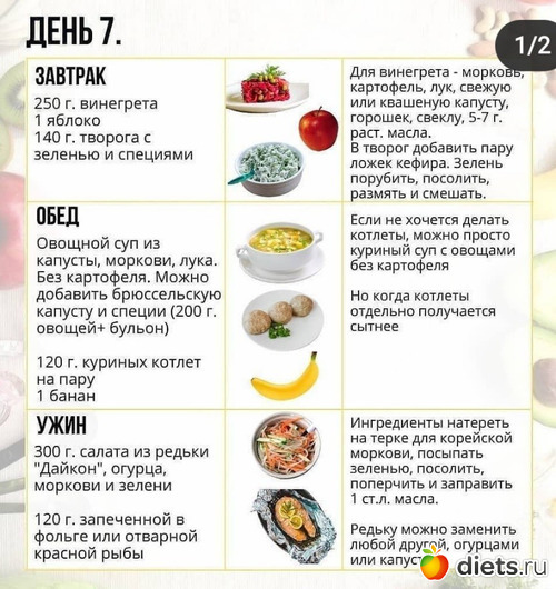 А также примерное меню на 7 дней: