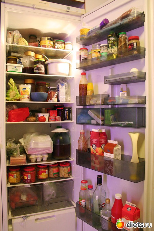 Когда я открываю холодильник, то первым делом на меня глядят овощи, а варенье традиционно живёт на верхней полке.