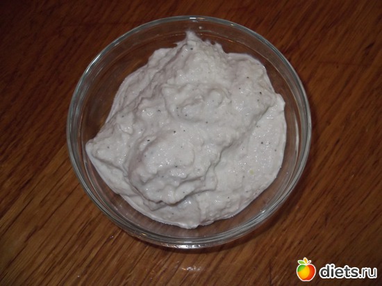 Заправка: 1ч.ложка горчицы+2ст.л.жидкого творога, соль,перец