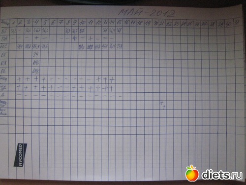 1. общее (вес, объемы,соблюдение правил диеты, таблетки и мои некоторые личные регулярности)