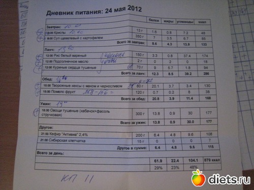 Я делала пометки в своем плане питания, сразу же после еды, проанализировала свой план питания на сегодня и вот, что у меня получилось...