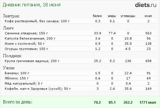 1.Дневник питания еще не веду... никак не освою подсчет каллорий, но я справлюсь! Всегда думала, что подсчет каллорий очень трудоемкое и бесполезное занятие, а благодаря нашей первой статье впервые задумалась о необходимости таких действий. Так что буду осваивать счетчик каллорий и вести дневник питания.