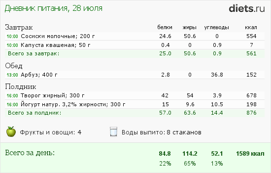 У меня был разгруз. Завтрак, ланч, обед и ужин был молокочай.