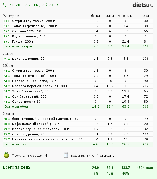 Короче, накосячила я уже вечером.... нет сил моих, нервы на пределе...груди болят жуть... спортом не занималась.... в общем буду надеяться, что завтра себя буду лучше чувствовать!