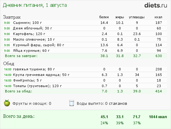 меню за 1.08.12