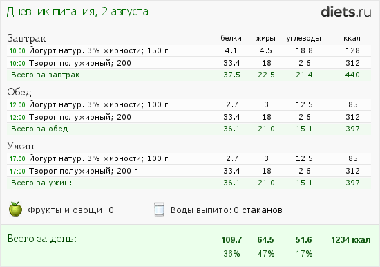 ужин - обезжиренный творог + 1,2 йогурт