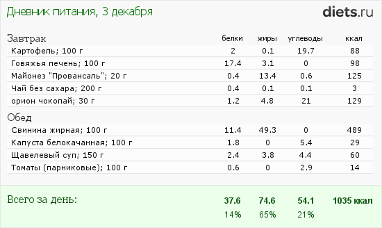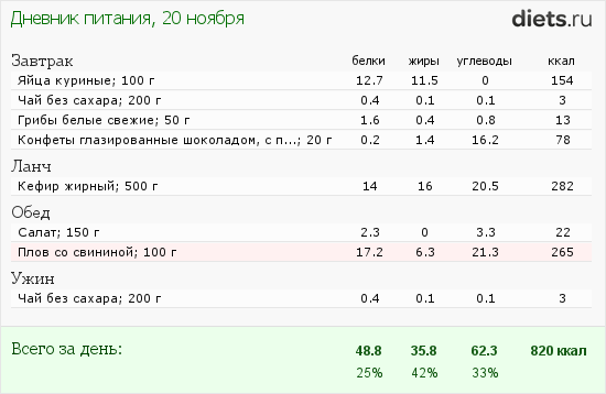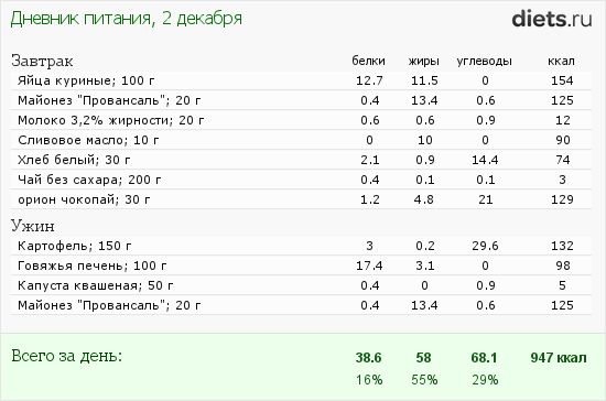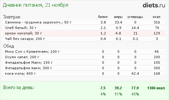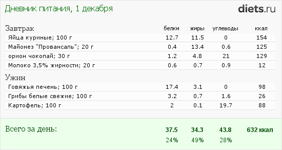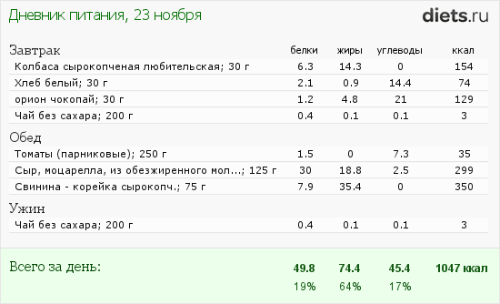 На сегодня мой рацион: