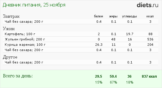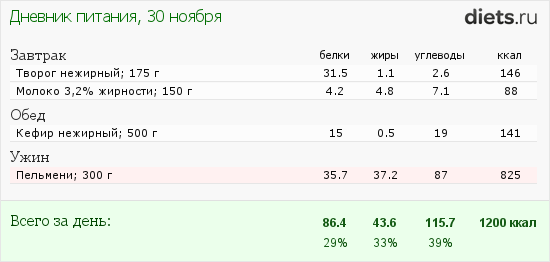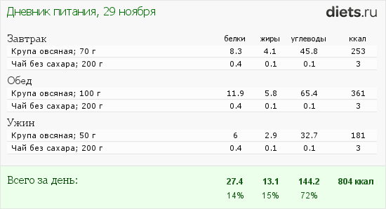 Итак мой рацион на сегодня: