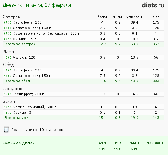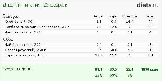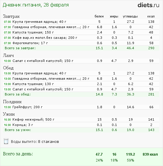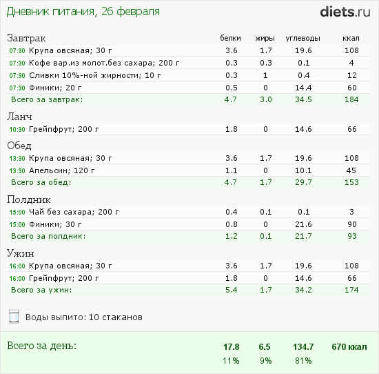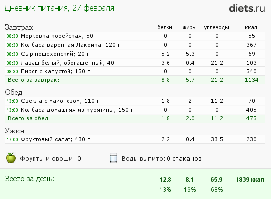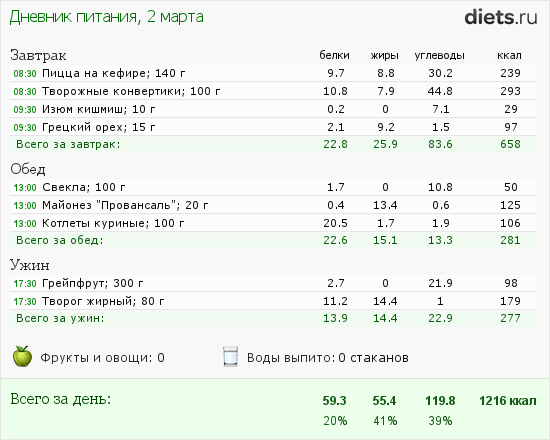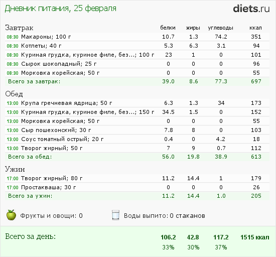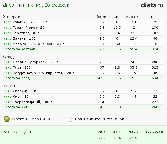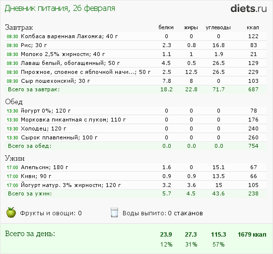 Мой рацион на сегодня такой: