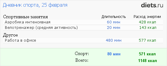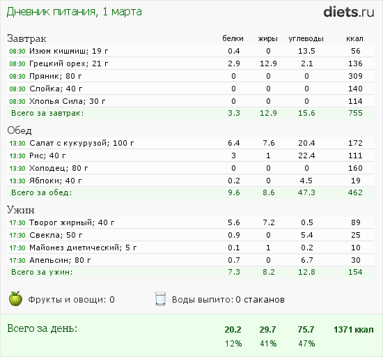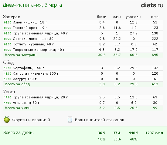 Итак мой рацион на сегодня: