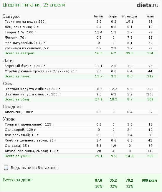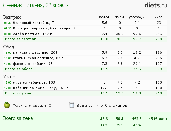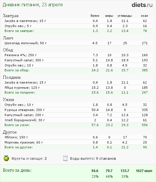 посчитала, в принципе, ты права. Можно попробовать калории снизить еще.