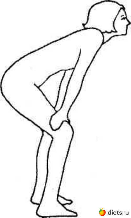 ■ Постарайтесь не сгибать коленей. Это уменьшает растяжку.